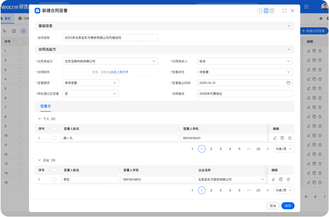 销售易CRM与腾讯电子签的集成,帮企业实现了经销商协议、对账单、合同订单等多场景的线上化签署。渠道经理可以在CRM中直接生成标准化合同签署模版,一键推送至客户小程序完成签署,系统自动留痕,确保流程透明高效。签署模版能一键复用、客户签字还能自动保存,大幅提升签署效率与客户体验。
