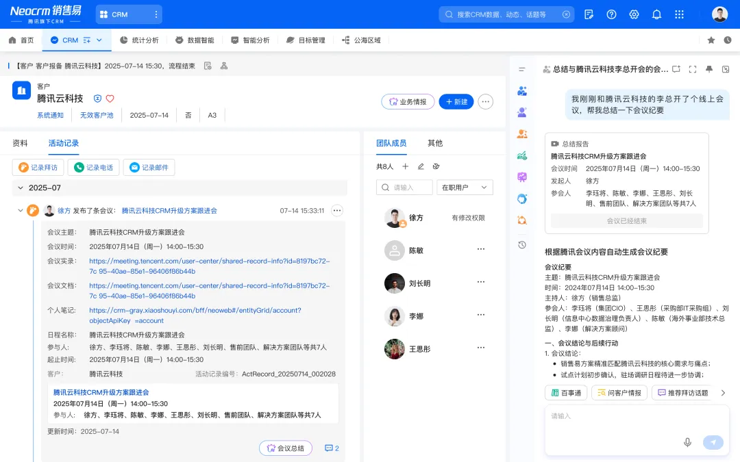 会后智能总结并同步CRM活动记录