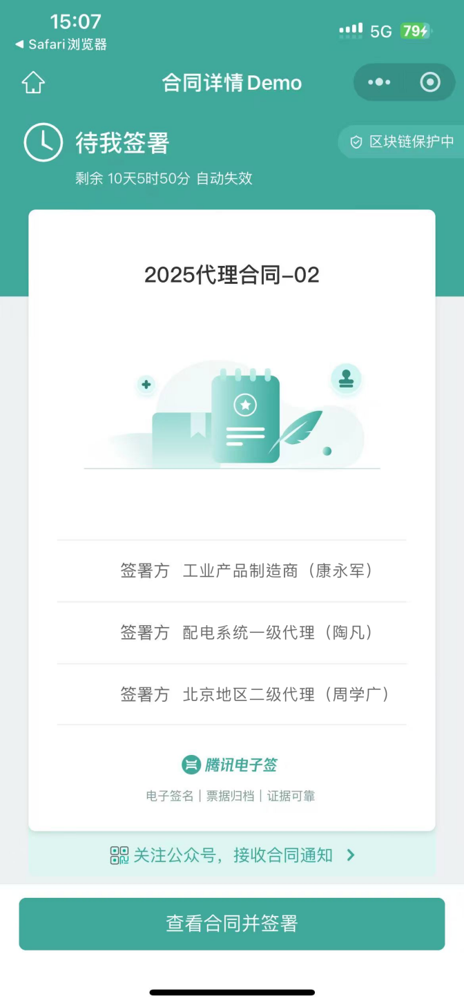 经销商在腾讯电子签小程序快捷完成渠道协议签约