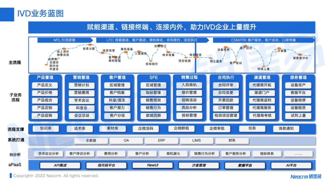 而作为新一代企业级CRM的开创者,销售易已服务华大基因、迪安诊断等IVD头部企业,通过营销服一体化的解决方案,结合IVD行业特点,从9大业务场景入手,助力IVD企业实现数字化转型。