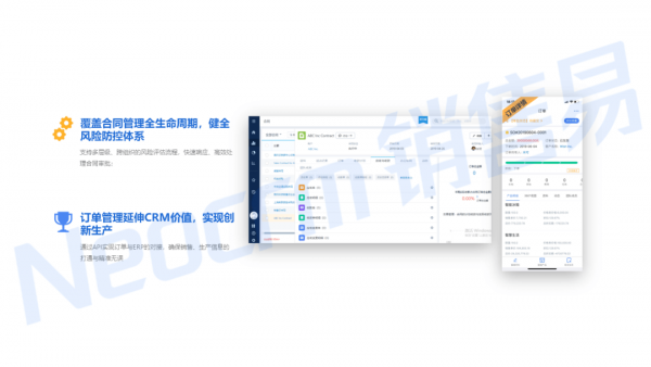 另外合同、订单两大看板,从多个视角和维度为企业提供有价值的数据分析。