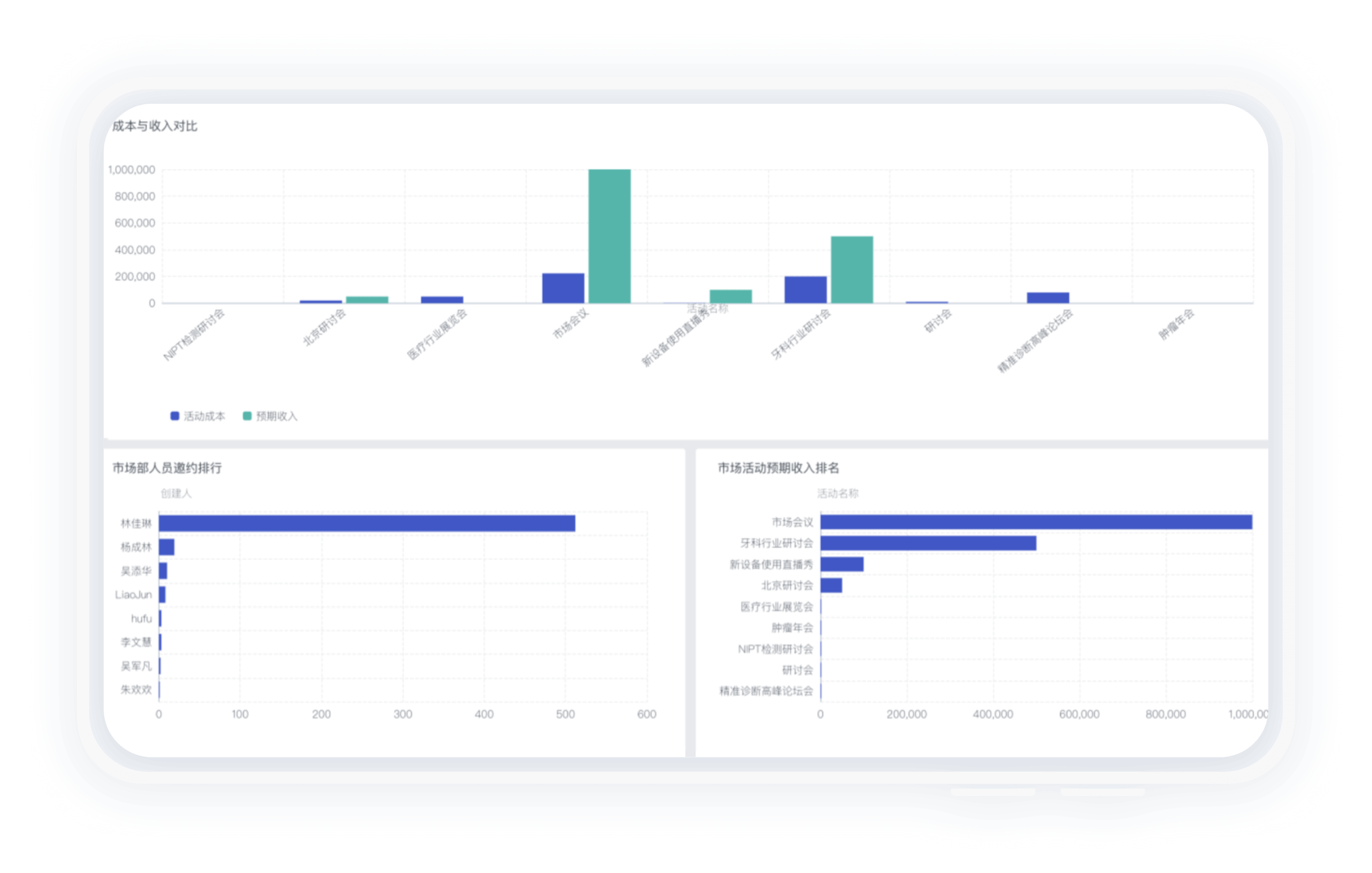通过ROI分析,让市场活动更规范,闭环管理更及时,用实际效果指导并不断调整市场活动策略,提升投入产出比