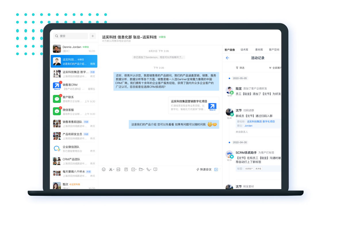 员工添加企业微信好友时,系统后台自动创建线索,客户关键行为全程记录