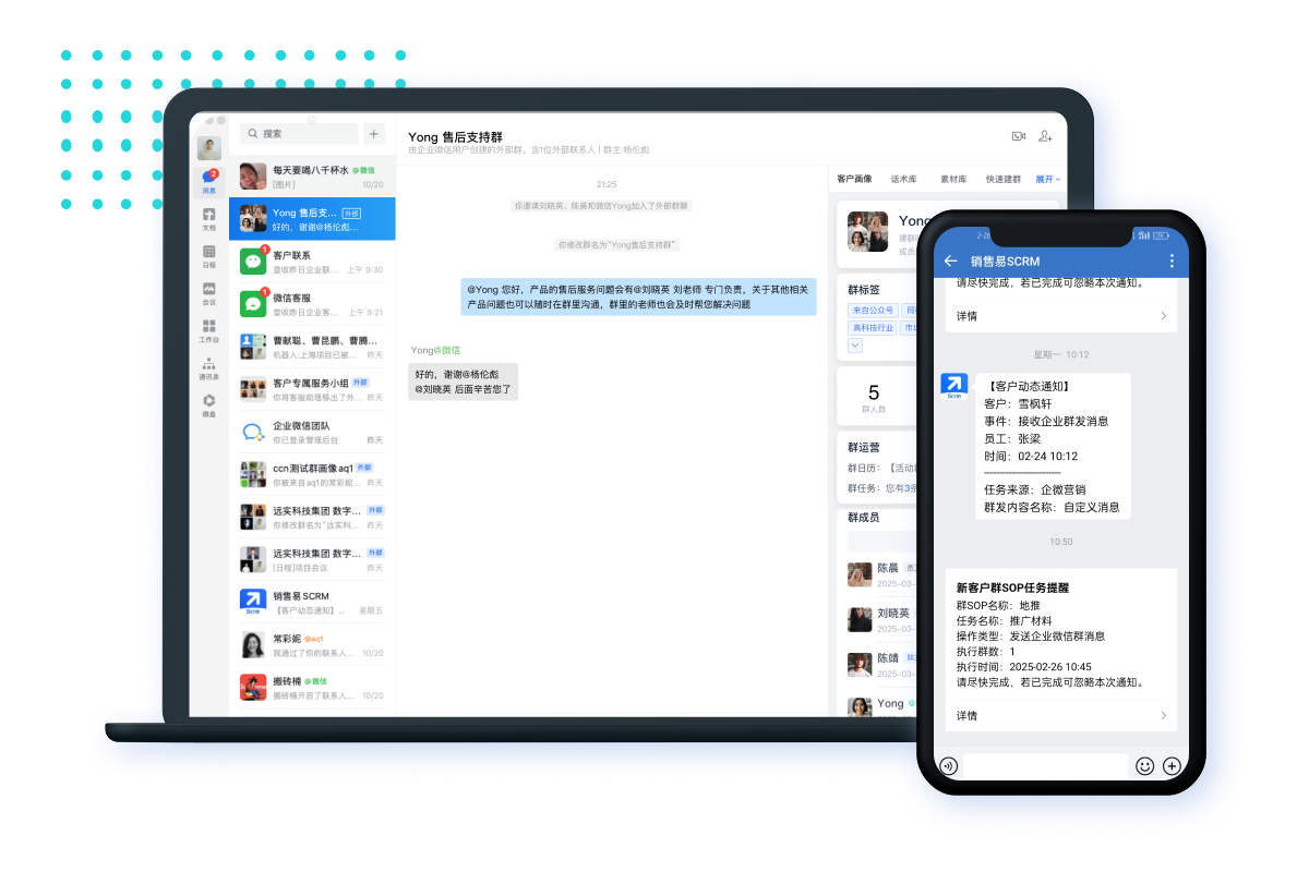 借助SCRM企微版,构建公私域联营生态,打通从企业、合作伙伴到终端客户的全链条连接,实现引流、转化、复购的业务闭环,有效推动资源共享与伙伴共赢!