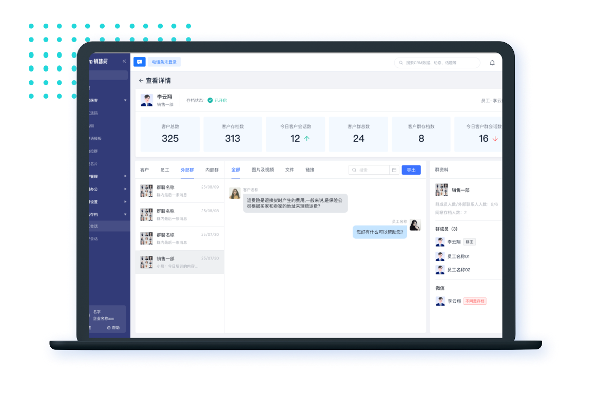 及时沉淀企微聊天与互动数据,后台可随时调阅存档,帮助企业复盘总结服务过程,提炼优质话术,持续提升服务质量